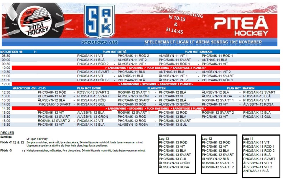 Hej här kommer information angående spelschemat inför söndagens cup i Piteå.
