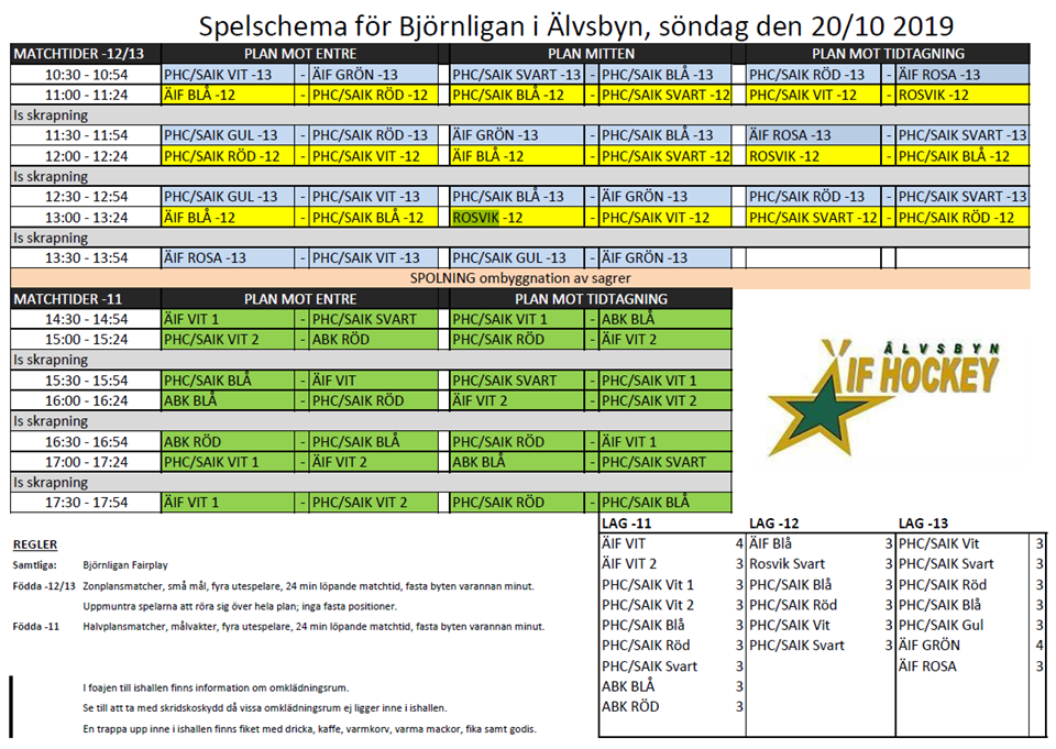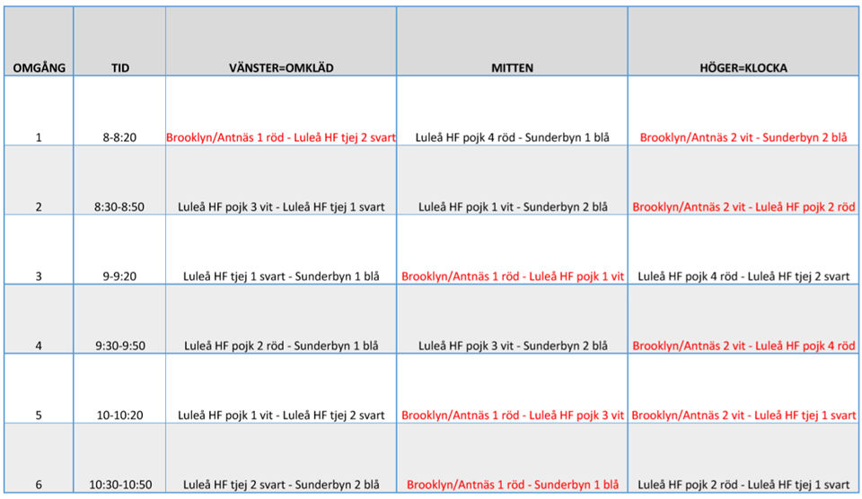 Spelschema sunderbyn U15/ -11 16 okt 2019 1kommentar