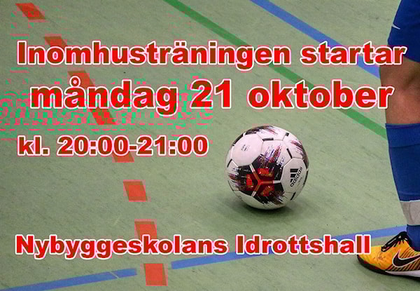 På måndag 21 oktober drar vi igång med inomhusträningen. Kl 20-21 i Nybyggeskolans idrottshall