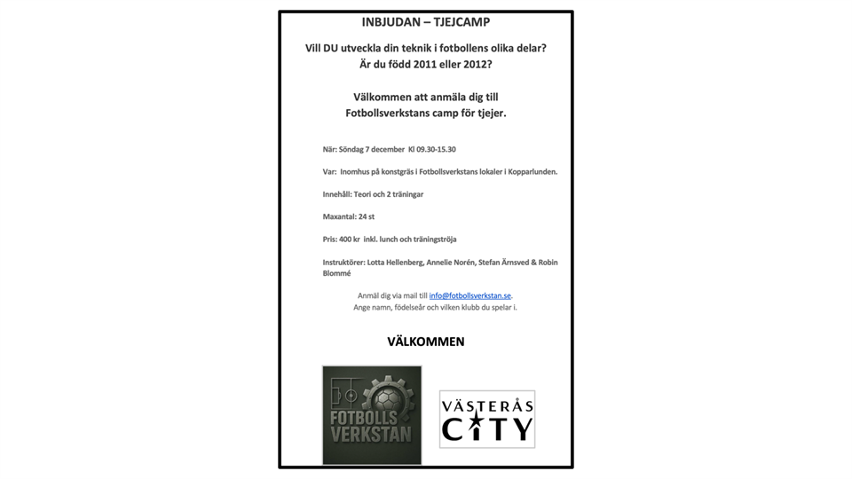 | Träningsläger Skinnskatteberg - Preliminärbokat | 13 mar, 16:00 |
