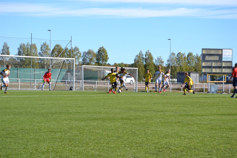 Idag spelades seriens sista hemmamatch mot gästande Myresjö/Vetlanda. En match som vi viste på förhand skulle bli fysisk och tuff. M/V börjar matchen med att backa hem och satsar som alltid slå bollen långt. Och till en början styr de matchen då vi ligger lite fel i positionerna. Men efter 10 minuter tar vi över och spelar oss igenom M/V flertalet gånger. Vi tar rättvist ledningen i slutet av första genom Raid som sätter en straff. I början av andra låter vi inte bollen göra jobbet utan försöker göra det på egen hand och det straffar sig. M/V gör 1-1 i 53 minuten. I 86:e minuten tar gästerna ledningen inte helt rättvist. Men vi reser oss direkt och gör 2-2 i 87:e genom Tropp. Det blir också slutresultatet. Nu laddar vi för sista matchen mot Vimmerby borta då serien ska avgöras. J18 10 sep 2016 0kommentarer