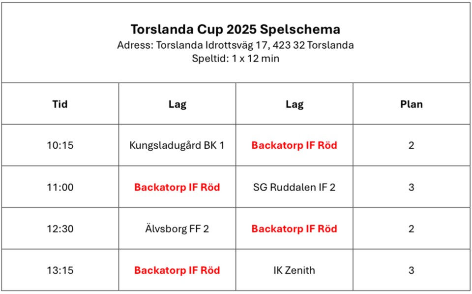 Torslanda Cup 2025 (inomhus) | 25 okt, 10:15 |