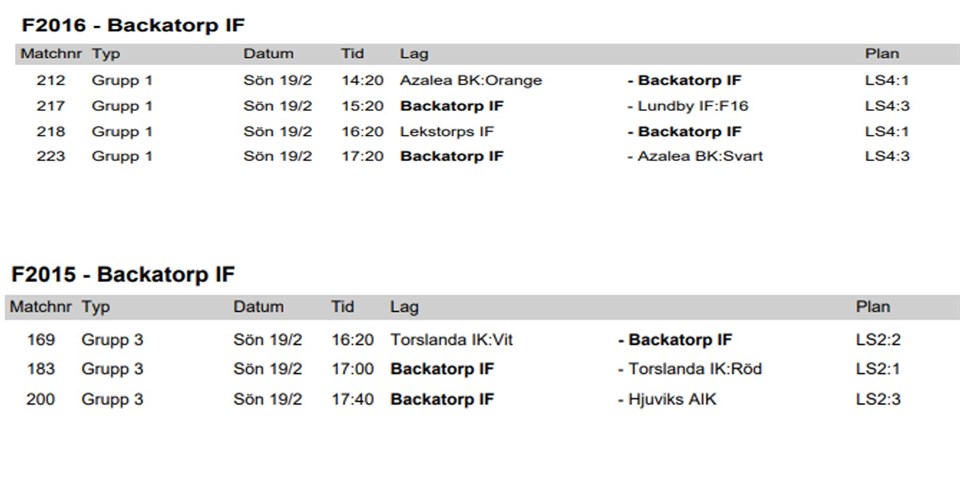 Spelschema klart inför sammandrag 19/2 Lundbystrand