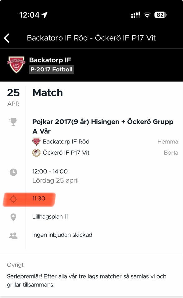 | Öckerö IF P17 Vit (hemma) | 25 apr, 12:00 |