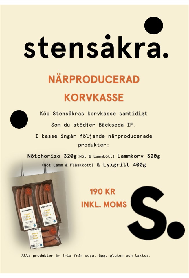 Försäljningen av korvkassar. Hej alla ungdomsledare samt ledare och spelare i BIF! Vi har tidigare år haft stor framgång i att sälja Stensåkras attraktiva korvkasse. Tanken är därför att vi ska upprepa detta även under våren 2022. Notera att efter önskemål om ett lite bredare och mer varierat sortiment så har Ellen på Stensåkra mixat kassen lite annorlunda i år. Vi tror att det faller fler i smaken på det sättet. Tyvärr blir kassen lite dyrare men förhoppningsvis är den ändå även fortsatt väldigt lätt att sälja. Deadline för redovisning av kassar är 31/5 och spelarna redovisar då till er ledare. Ni sammanställer och en ledare från varje lag återkopplar antalet till mig. Likt tidigare år så är målet att varje spelare ska sälja minst fyra kassar. Fler är som alltid välkommet! Förra året slog vi rekord i föreningsförsäljning! Som ni alla vet är detta väldigt värdefulla pengar till klubben. Jag återkommer kring när vi kan hämta ut och leverera kassarna men preliminärt är det måndag eller tisdag v 23. Även detta år är fotbollslekis exkluderat från försäljning. Hör av er om det är några frågor och hjälp gärna oss att se till så att alla lag/ledare fått tagit del av denna info. Med vänlig hälsning Martin Nilsson F-12 9 maj 2022 0kommentarer