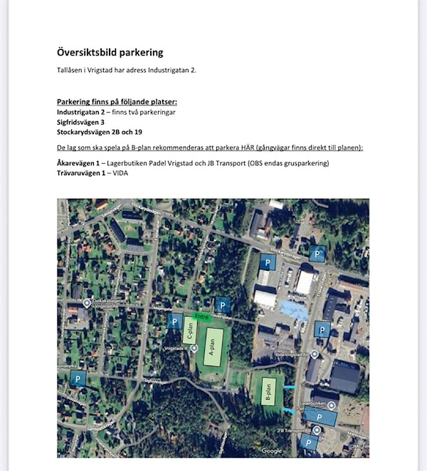 Tjejerna kommer att spela matcherna på B planen, ni ser vilka parkeringar som är bäst!