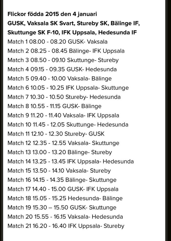 | Träningsmatch UIF F2016 | 18 jan, 09:30 |