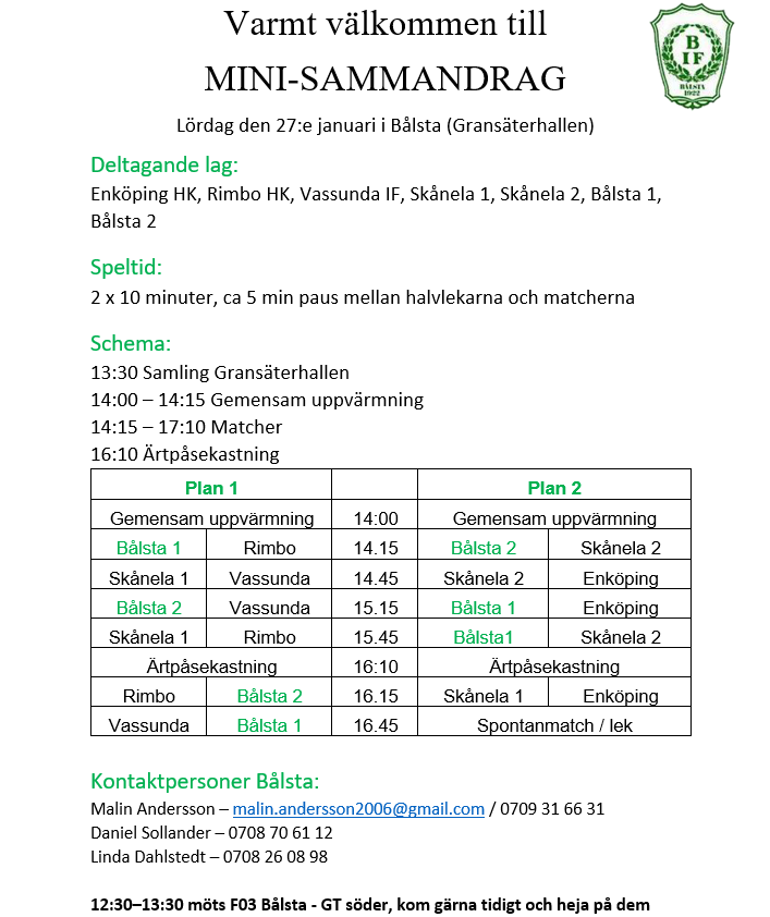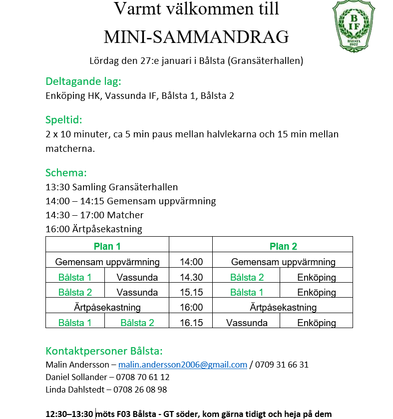 • Föräldraschema Minisammandrag i Bålsta 27:e januari