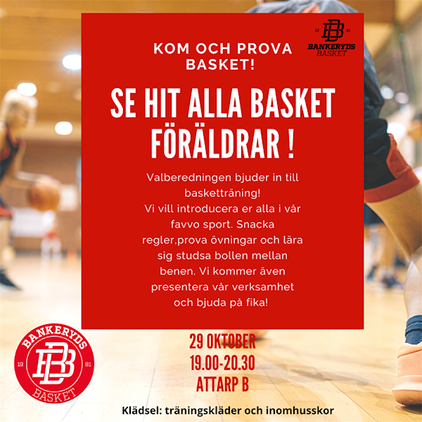 Vi i valberedningen vill bjuda in alla föräldrar att prova på basket och samtidigt informera om vår verksamhet.