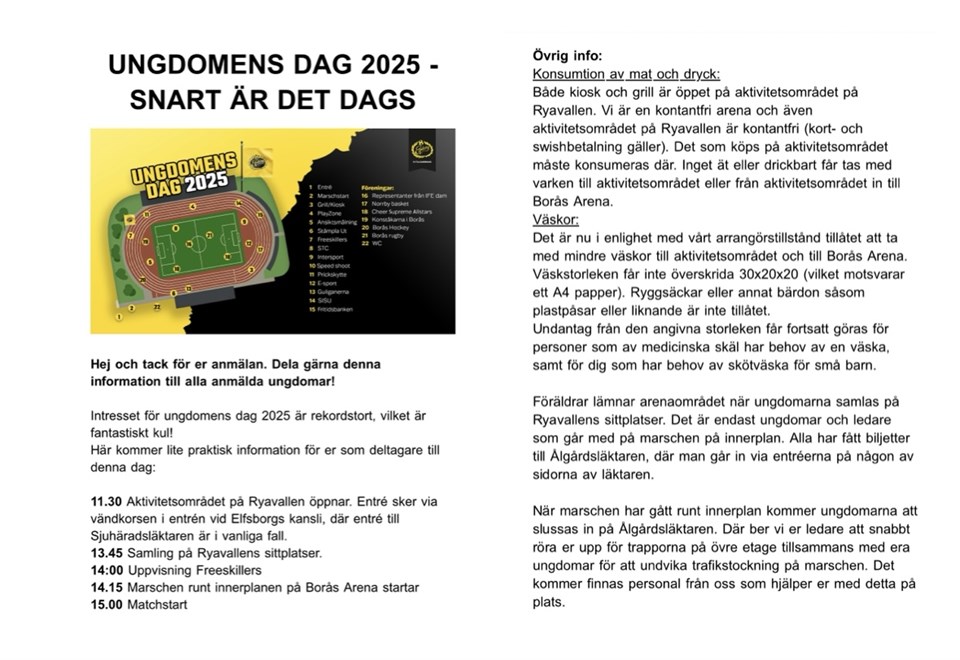 Här kommer info inför Ungdomens Dag lör 27sep.