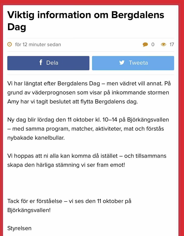 Klicka på bekräftelselänken i det mejl vi skickat dig för att börja ta emot uppdateringar från Bergdalens IK P-14.