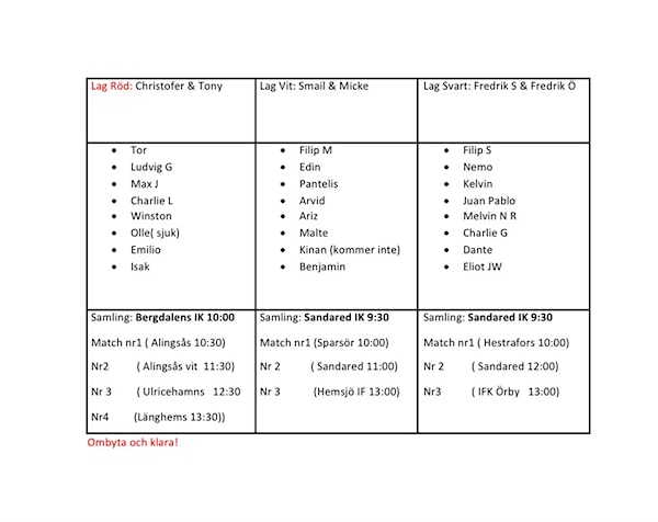 Om möjligheten finns så vore det bra om Benjamin och Elliot är i samma lag då Jane tar killarna dit själv. <3 jag är på en annan cup med Gabriel