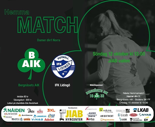 Söndag 12/10 kl.13.00 spelar BAIKs damer sin sista hemmamatch för säsongen.