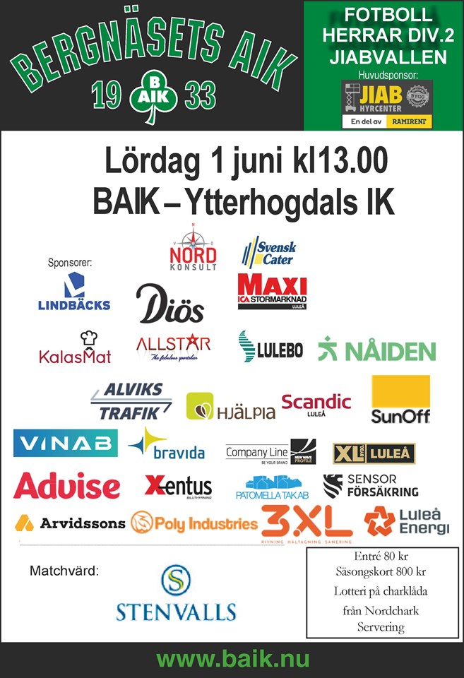 Lördag 1 juni kommer seriens mest långväga gäster, i div.2 Norrland herrar, Ytterhogdals IK på besök. Matchen spelas kl.13.00 på JIABvallen. Ytterhogdal har startat serien bra med fem segrar och en oavgjord på de första nio matcherna. Bl a slog man BBK FF med 3-1 på bortaplan vilket är "starka papper". Matchsponsor är Stenvalls Trä och Nordchark levererar Charklådan till lotteriet. Välkommen! Fotbollsektionen 30 maj 2024 0kommentarer