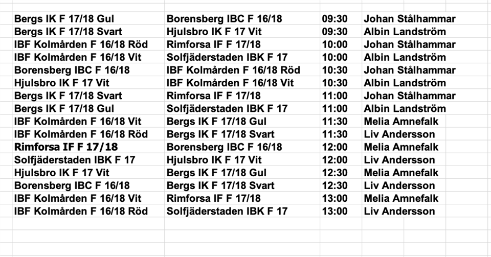 | 10. | (16) | Bergs IK HJ (Herrjunior) |