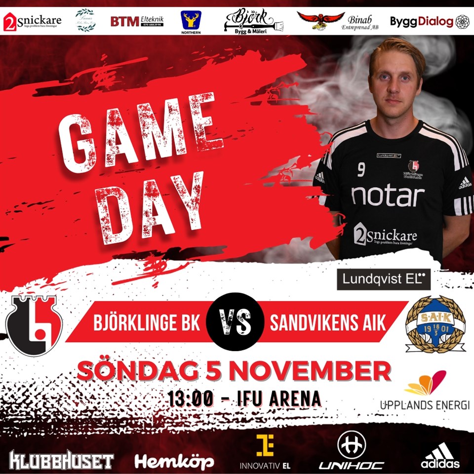 På söndag är det äntligen dags för hemmamatch igen! Björklinge tar emot Sandviken som stod för en fin skalp senast då man besegrade topptippade Borlänge. BBK tog en stabil seger borta mot LI20 där Mikael Hast noterades för hela fem poäng. Alla matcher är viktiga i detta getingbo till tabell så vi hoppas att så många som möjligt kommer till IFU på söndag för att hjälpa laget till seger. Passa även på att köpa bingolotter till uppesittarkvällen för samma pris som i butik, samtidigt som du stöttar BBK! Har du inte möjlighet att se matchen på plats sänds den på: https://www.innebandy.tv/livestream?id=s-bjorklinge-bk-sandvikens-aik-fc2r9q A-lag Herrar 2 nov 2023 0kommentarer