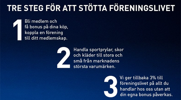 Stötta föreningen med varje köp hos Intersport. På allt du handlar på Intersport ger de tillbaka 3% till föreningslivet. Du kan själv välja vilken förening du vill stötta genom att koppla ditt medlemskap till någon av alla föreningar som de samarbetar med, vilket Björklinge BK gör. Självklart får du, precis som vanligt, tillbaka din bonus om 2–6%. Så ju mer du handlar, desto mer bonus får du och din valda förening. Snacka om win-win-win! Genom att logga in på mina sidor och där kan man under Mina uppgifter välja vilken förening man vill stötta. Tack för ditt stöd!