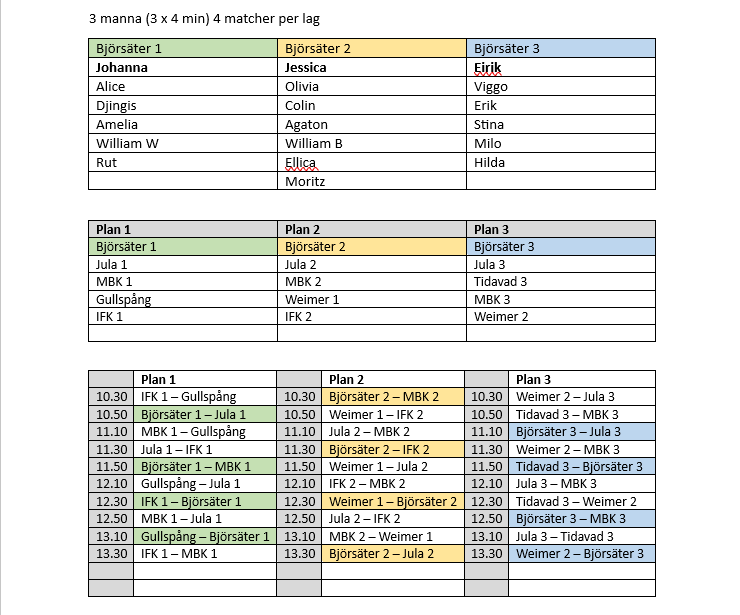 Här kommer spelschema för sammandraget 17 maj. Samtliga samlas 10.00 på Björsäters IP. Svarta shorts och strumpor vill vi gärna att spelarna har om de har de själva (annars får man låna) Tröjor lånas ut av föreningen för denna dag. P/F-16/17 14 jun 2023 0kommentarer