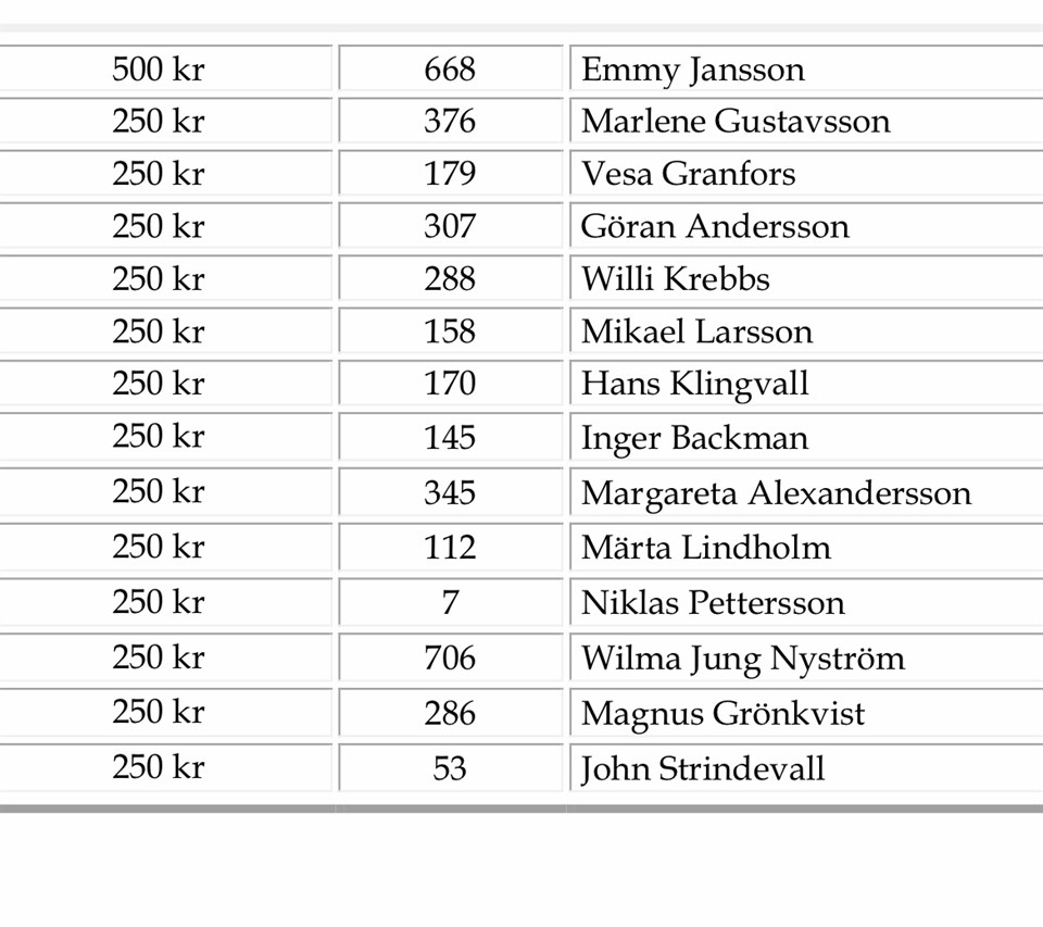 Vi säger stort grattis till er som vunnit denna vecka.