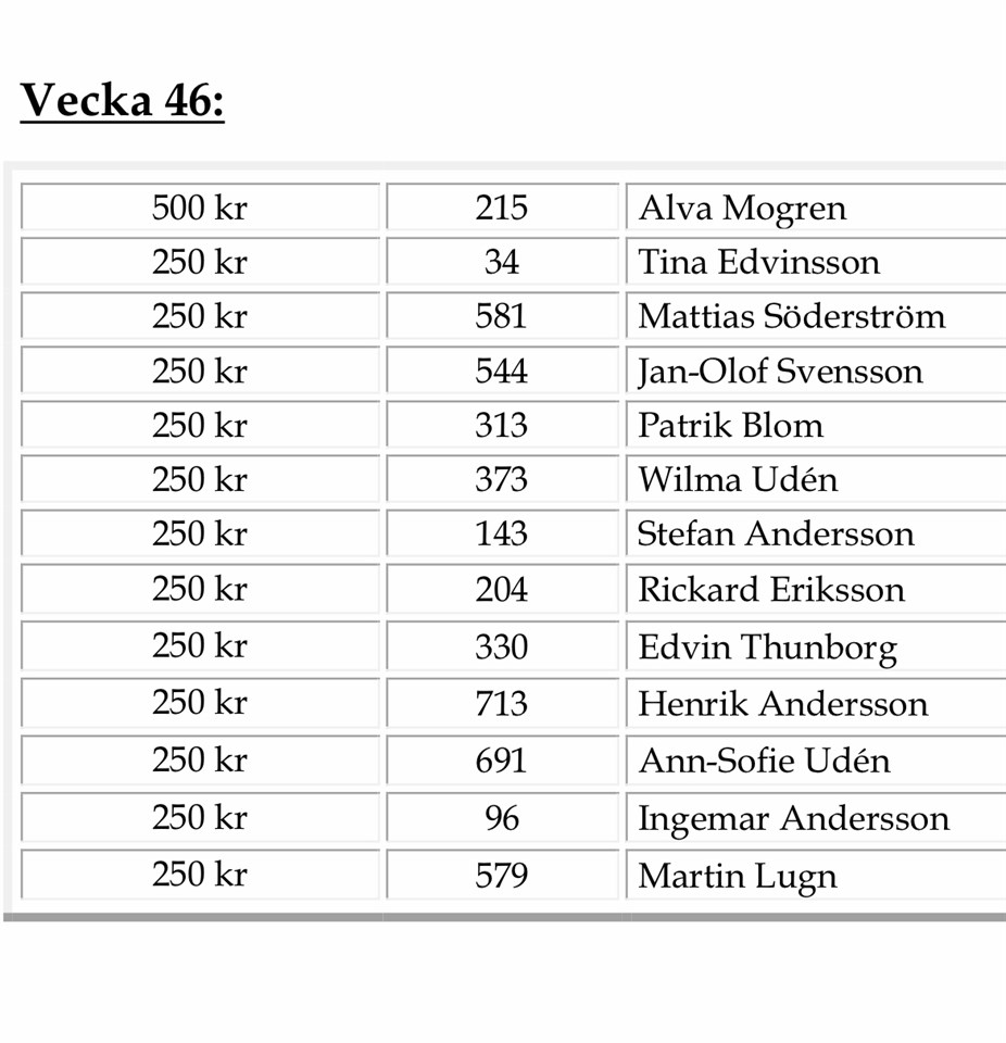 Vi säger stort grattis till er som vunnit denna vecka.