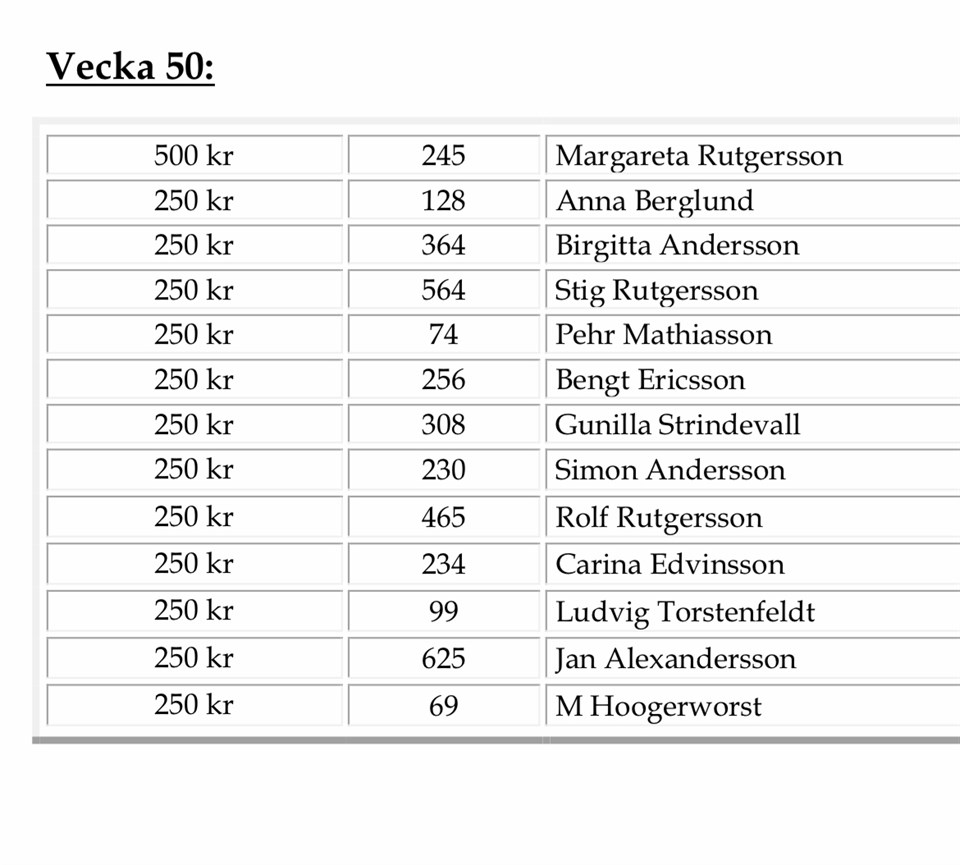 Stort grattis till alla som vunnit.