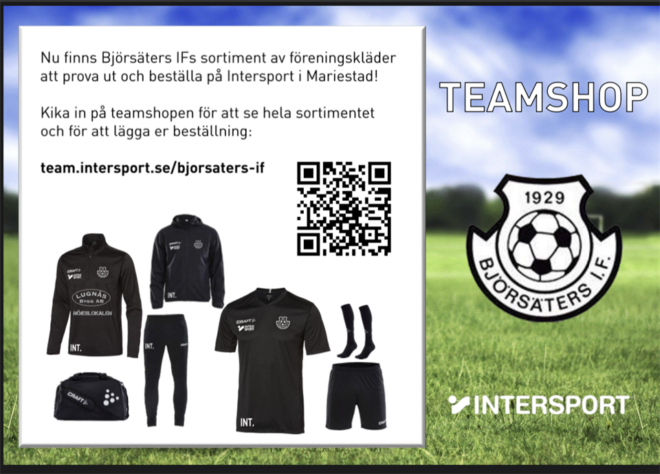 Via länken eller om ni går in till intersport butiken och provas så kan ni skaffa era klubbkläder. https://team.intersport.se/bjorsaters-if Björsäters IF 29 mar 2023 0kommentarer