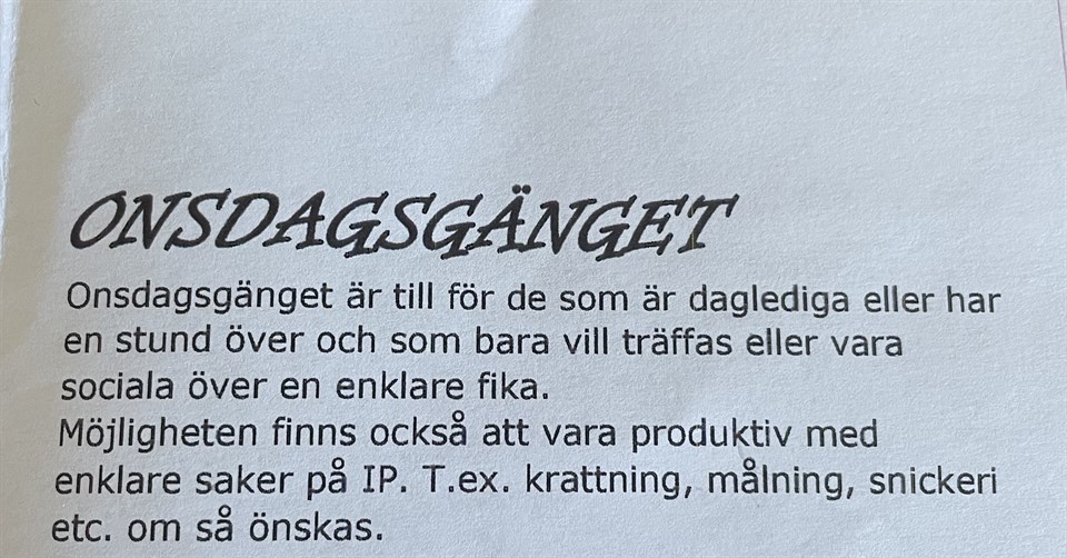 Nu på onsdag 26/4 kl 9:30-11 samlas onsdagsgänget igen så har du inget för dig så dyk upp. De samlas för att umgås och tjata skit övet en kopp kaffe, någon kanske får för sig att fixa något som är i behov utav en åtgärd. Björsäters IF 23 apr 2023 0kommentarer