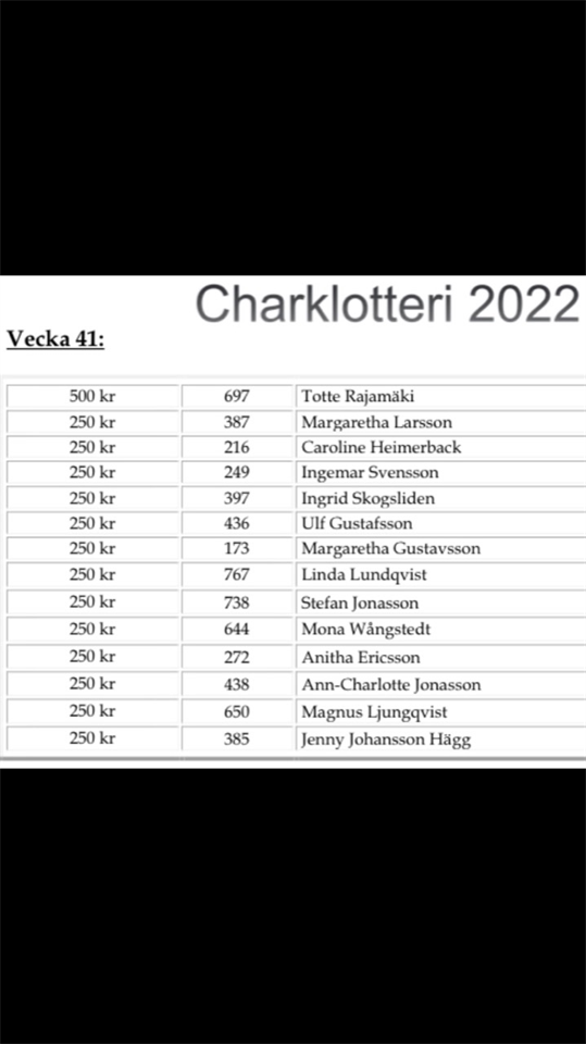 • Vinnare av charklotteriet v41