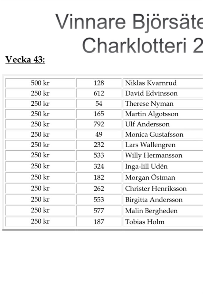 Ny vecka nya vinnare! Stort grattis till er som vann denna vecka. Björsäters IF 24 okt 2022 0kommentarer