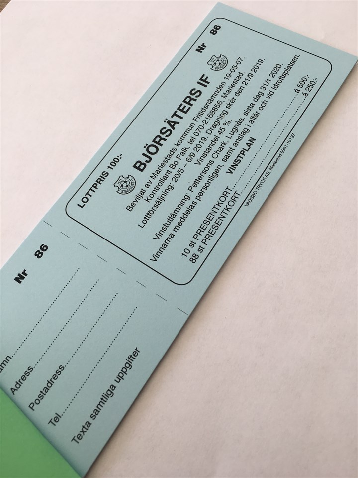 Nu har lotterna för årets charklotteriet kommit å finns för försäljning lite här å var av spelare å ledare! Skynda å köp så du inte går miste om fina vinster från Pettersons chark i byn! Björsäters IF 4 jun 2019 0kommentarer
