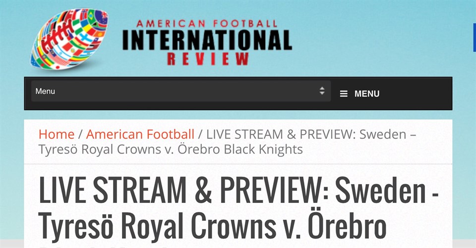 the Swedish league returns to action this weekend, the game of the week in Sweden may well be two time Swedish finalist the Örebro Black Knights traveling to Stockholm to take on the powerful Tyresö Royal Crowns. The undefeated Royal Crowns (7-0) sit atop the Swedish standings with the league’s leading offense having scored 357 points in seven games while giving up 99. Örebro are sitting precariously in fourth at 4-2 but having only scored 97 points total. On the other hand, the Black Knights defense is ranked third in Sweden allowing only 117 points in six games so far in 2015. LIVESTREAM AND PREVIEWS TYRESÖ ROYAL CROWNS - ÖREBRO BLACK KNIGHTS
