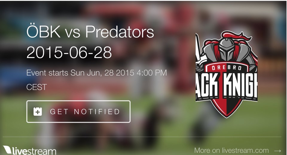 Här kan ni se matchen via LIVESTREAM LIVESTREMA ÖREBRO BLACK KNIGHTS - KRISTIANSTAD PREDATORS Elit-lag Herr 27 jun 2015 0kommentarer