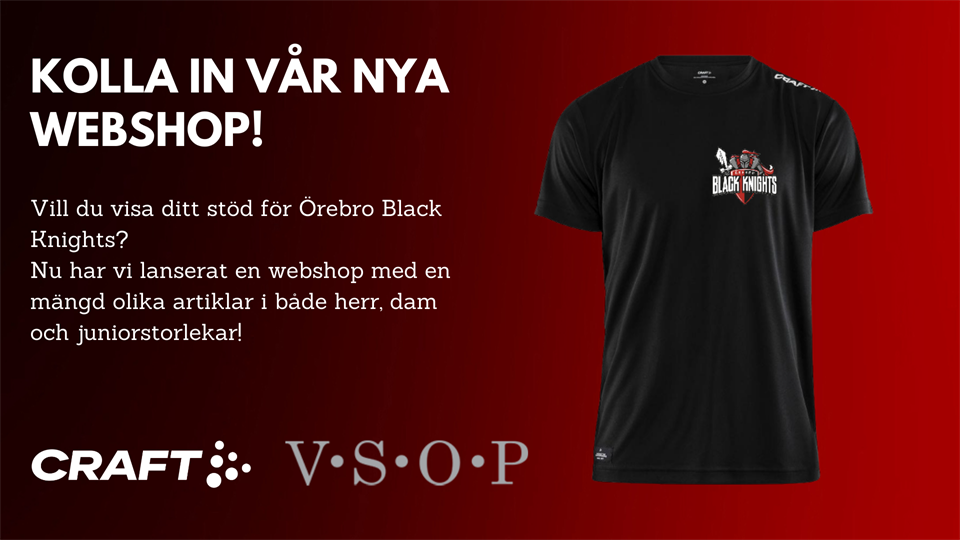 Webshopen är på plats med mycket träningskläder. Vi har avtal med Craft så det är deras sortiment som gäller för kläder. Webshopen är uppsatt i samarbete med VSOP. Webshopen kommer inom kort att kompletteras med ytterligare produkter. Länk till Örebro Black Knights Webbshop