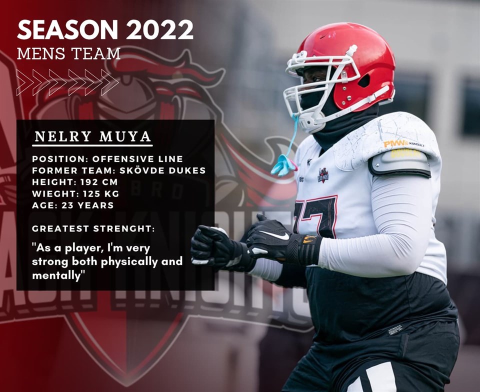 Unga talanger är något som präglat Örebro Black Knights spelartrupp under många år. Förra året såg man en perfekt kombination av talangfulla ungdomar (Lindeusbröderna, Rikard Carlsson, Filip Wetterberg m.fl.) och extremt kapabla veteraner (Filip Jönsson, Johan Lindahl, Erik Törnblom, Sebastian Nilsson m.fl.) vilket ledde till att det efterlängtade SM-guldet äntligen hittade hem till Örebro. Att man nu fortsätter satsningen på fotbollens framtid är inte konstigt. Det är nu klart att de unga talangerna Nerly Muya och Danny Falk från Skövde Dukes väljer att fortsätta sin fotbollskarriär med Black Knights. Nerly, med sina 192cm och 125kg, har bara utövat sporten i tre år. Trots det är han en mycket lovande ung Olinespelare som bara är i startskottet av sin karriär. ”Nerly är en stor och stark OL som vi förväntar oss mycket av. Vi är oerhört glada och stolta över att han vill komma och spela med Black Knights. Danny är en explosiv och snabb DB, som vi tror kan bidra mycket både som DB och på Special Teams. Det ska bli spännande att se Dannys utveckling.” Micael Jönsson, Sortchef herr Örebro Black Knights Danny spelar nu sin fjärde säsong och hoppas kunna bidra med sin explosivitet, snabbhet och höga arbetsmoral. Med sina 178cm och 70kg blir det spännande att se vad han kan skapa på plan med hjälp av sin till talang och Örebro Black Knights meriterade coacher. Nerly Muya från Skövde Dukes. Foto: Jonas Domfors Danny Falk från Skövde Dukes. Foto: Torbjörn Andersson ”I am looking forward to what Nerly can bring to our team. He has the frame to be an exceptional Offensive Lineman. Hopefully he makes the strides we believe he can and makes an impact for us on the field this season. I have heard great things about Danny’s character from our training day. I am excited to see how he develops at DB this season.” Sam Eisenstadt, Headcoach herr Örebro Black Knights För Örebro Black Knights väntar många utmanande och roliga matcher under våren och sommaren. Inte nog med att den svenska serien utökats med fler och nya lag, nu väntar även spel i våra grannländer och Europa. Med Superserien, Scandinavian Cup och CEFL (Central European Football League) ser det i nuläget ut att bli minst 10 matcher för Örebroarna. Detta är något som skapat stort intresse för klubben. ”Jag valde spela med Örebro Black Knights för att det är ett lag där jag ser att jag kan utvecklas som person och spelare.” Nerly Muya, OL Örebro Black Knights ”Inför kommande säsong har jag valt att gå med ÖBK. Jag valde ÖBK på grund av det är en av Sveriges absolut bästa lag och med den succén de har haft de senaste åren så var det ett enkelt val för mig. Förhoppningsvis så kan jag bidra till flera vinster och troféer till denna klubb.” Danny Falk, DB Örebro Black Knights Nerly Muya Längd: 192cm Vikt: 125kg Position: Offensiv Linjeman Tidigare klubb: Skövde Dukes Danny Falk Längd: 178 cm Vikt: 70 kg Position: Defensiv back Tidigare klubb: Skövde Dukes Håll utkik på vår hemsida och sociala medier för mer uppdateringar om truppen inför säsongen 2022.