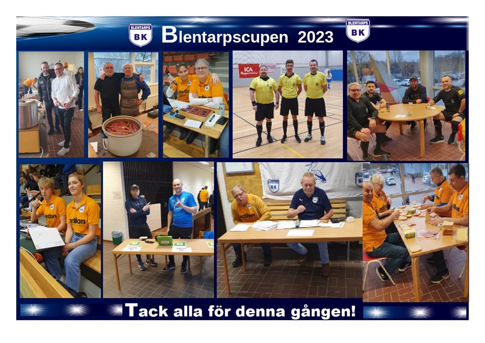 Nu är Blentarpscupen 2023 slut och vi vill passa på att tacka alla er som tillsammans med oss upplevt äkta Futsalglädje i två dagar. Vi vill förstås tacka alla er spelare, ledare, domare och supportrar som kommit hit från många håll, men vi vill också rikta ett varmt tack till alla de fantastiska föräldrar, frivilliga och ideella krafter som gör Blentarpscupen möjlig! Vi är kanske inte störst, men vi är otroligt stolta över det arrangemang vi åstadkommer en gång om året och vi vet att alla ni som besöker oss uppskattar det! Inte minst det faktum att så många återkommer år efter år är ett bevis på det. Vi önskar er alla välkomna tillbaks till oss! Vi ses nästa år! Per Hansson Ordf Blentarps BK