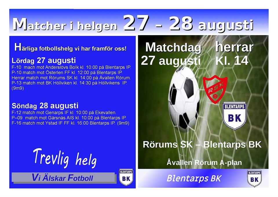 Mycket fotboll i helgen Blentarps BK 25 aug 2022 0kommentarer