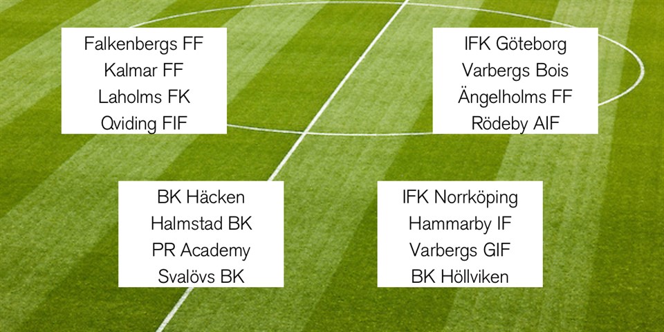 Äntligen! Efter seedning och geografisk indelning har vi lottat fram följande grupper. OBS! ÖRebro SK har ersatt PR Academy! BLÅ Falkenbergs FF Kalmar FF Laholm FK Qviding FIF RÖD BK Häcken Halmstad BK Örebro SK Svalövs BK GUL IFK Norrköping Hammarby IF Varbergs GIF BK Höllviken GRÖN IFK Göteborg Varbergs BOIS Ängelholms FF Rödeby AIF Uppdaterad 2016-09-02 Bockstenscupen 11 aug 2016 0kommentarer