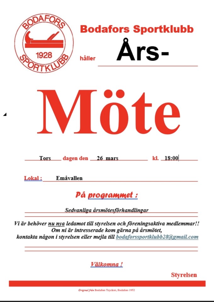 | Årsmöte 2026 | 26 mar, 18:00 |