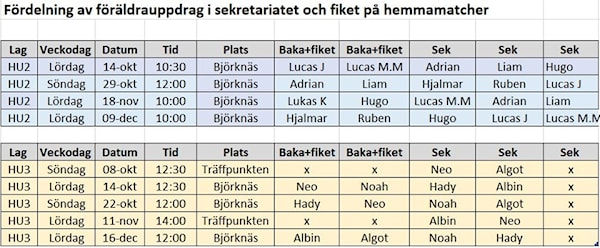 Bifogar fika och sek. lista. När matcherna är på Träffpunkten har vi inget fika pga. logistiska problem.