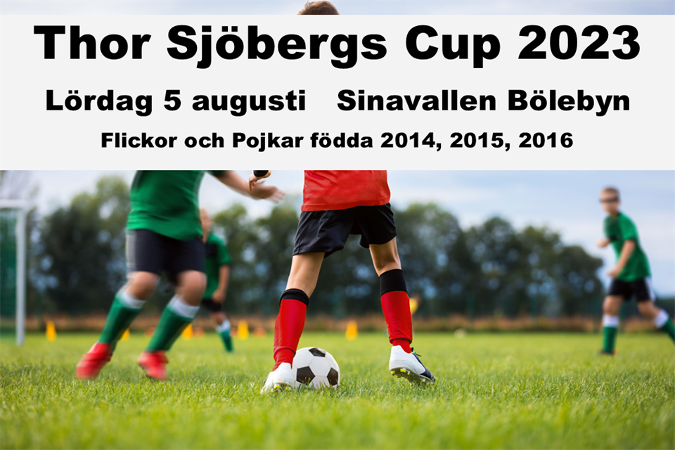 Thor Sjöbergs Cup 2023 30:e upplagan av THOR SJÖBERGS CUP Flickor o Pojkar 2014, 2015, 2016 Lördag 5 augusti 2023 Sista anmälningsdag 1 juli Bölebyn SK Bölebyn SK 8 maj 2023 0kommentarer