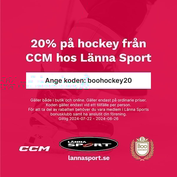 LÄNNA SPORT ger Boo Hockeys medlemmar rabatt inför uppstart av kommande säsongen.