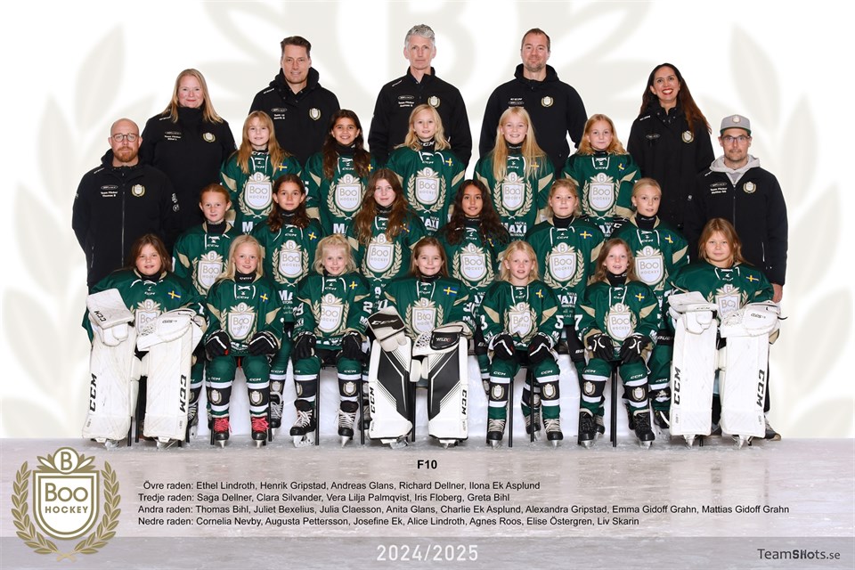 I Boo Hockey Flickor är alla tjejer välkomna som vill spela hockey. Boo Hockey Flickor tränar 2-3 gånger i veckan. Merparten är tjejer födda 2013-2018 men även äldre spelare är välkomna att träna med oss. I gruppen F10 har vi spelare födda 2015-2016.