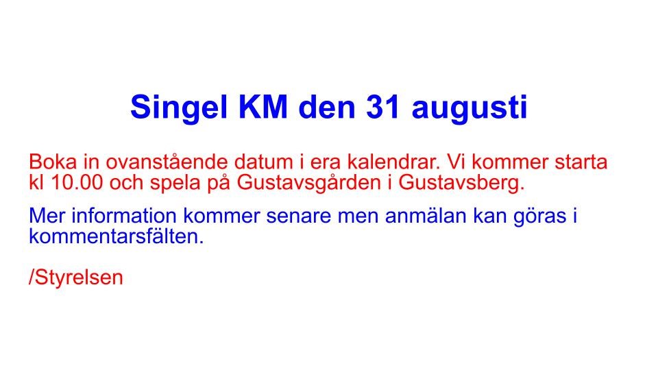 Seriespel Linköping och anmälan Vårberg 10-11 augusti.