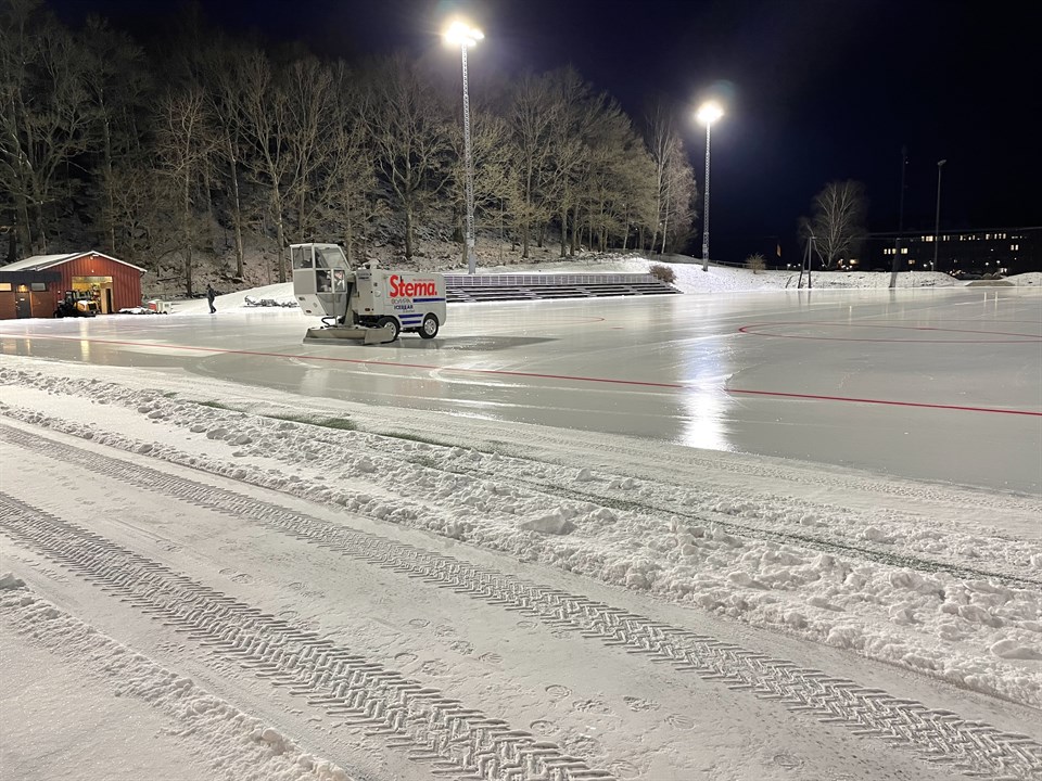 Äntligen är vi här – Bodavallen är spolad och målad!! För oss bandynördar är detta en syn som gör oss smått rörda och det betyder också att våra lag äntligen kan få börja träna på sin hemmaplan, något som är helt ovärdeligt. I slutet av förra veckan lades grunden till vår bandybana klar av flera fantastiska volontärer. Det som återstod var målning och linjedragning på isen innan den skulle stå helt färdig för oss att kunna åka ut på. Döm av vår förvåning när allt detta är klart på måndagseftermiddagen! Ett STORT tack till Borås Stad och våra kära vaktmästare Andreas, Fredrik och Lotta för ett otroligt snabbt och proffsigt arbete. Nu vattnas planen för att lägga de sista lagren innan planen är spelbar i mitten av denna vecka. Äntligen kan vi börja träna ordentligt – hemma i Borås. Nu kör vi!