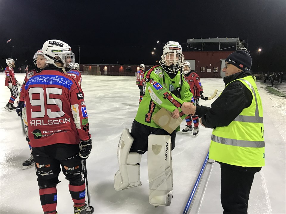 Se referatet här! Matchens lirare i Borås Bandy: #22, MV Hampus Wennström. Prisutdelare och prissponsor: Conny Skoglund, tillika födelsedagsbarn. Grattis Hampus och tack och grattis Conny!