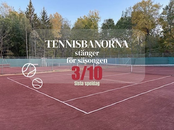 Utesäsongen är snart över för i år och sista dagen att boka tennisbanorna i Börje är fredagen den 3 oktober. Därefter kommer vi att påbörja arbetet med att iordningsställa banorna inför vintern.