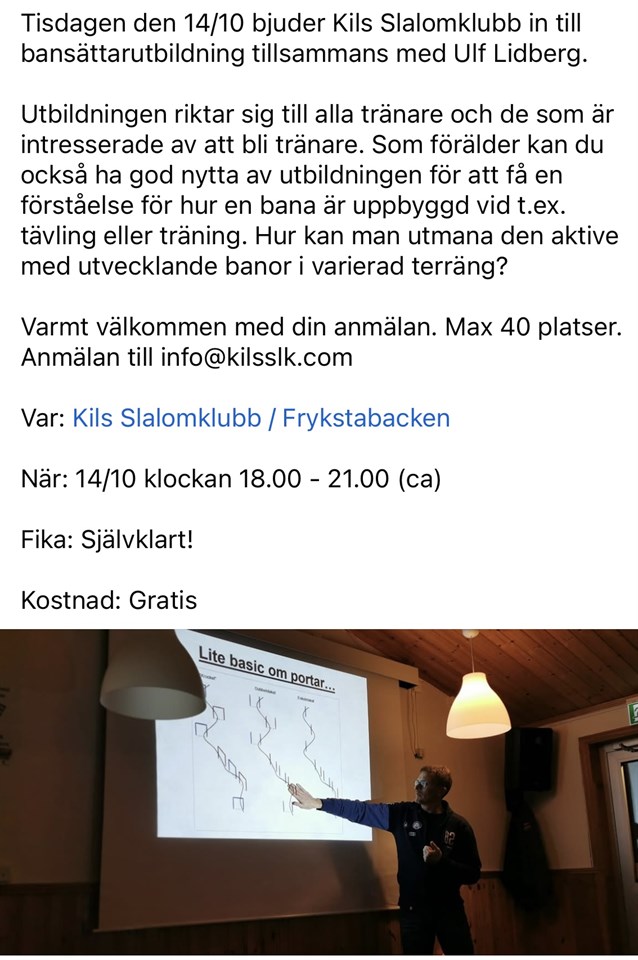 Hej alla föräldrar! Den 14/10 finns möjlighet att åka till Kil och delta i bansättarkursen. Det är ett bra tillfälle att få inblick i hur bansättning fungerar och kan vara lärorikt även för den som bara vill få en bättre förståelse. Hör gärna av er till mig om ni är intresserade, så samlar jag ihop anmälningarna från vår klubb. Träningsgrupp 19 sep 0kommentarer