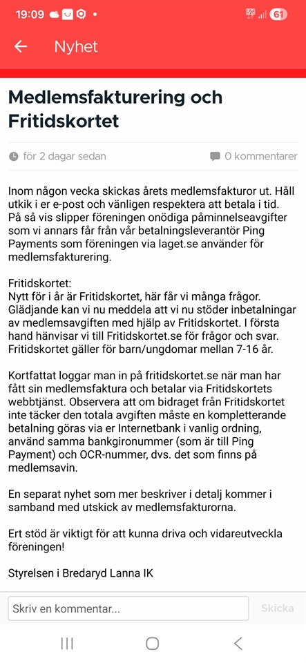 Klicka på bekräftelselänken i det mejl vi skickat dig för att börja ta emot uppdateringar från Bredaryd Lanna IK P-13.