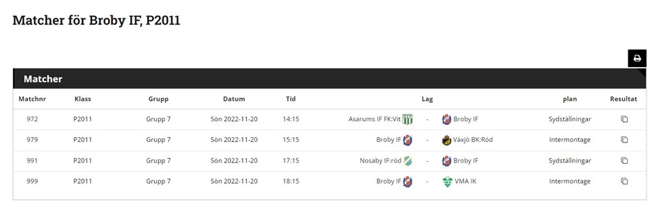Hej, Då var det dags för första cupen nu under vintern LB Indoor cup i Bromölla spelas på konstgräs i Bromölla Sparbankshallen man spelar 5mot5 korta matcher enbart 12 minuter per match, jag kommer till denna cup endast ta ut sju spelare alla spelare som tränar kommer få chansen att spela någon av cuperna nu i vinter. Laget som åker till Bromölla är följande, Maximilian, Oscar, Loke, Sixten, Sigge, Abdulkarim, Wilgot. Vi samlas på Broby IP kl: 12:45. Viktigt att man kontaktar mig på 0702768113 om man inte kan delta i cupen Klicka här för spelschema