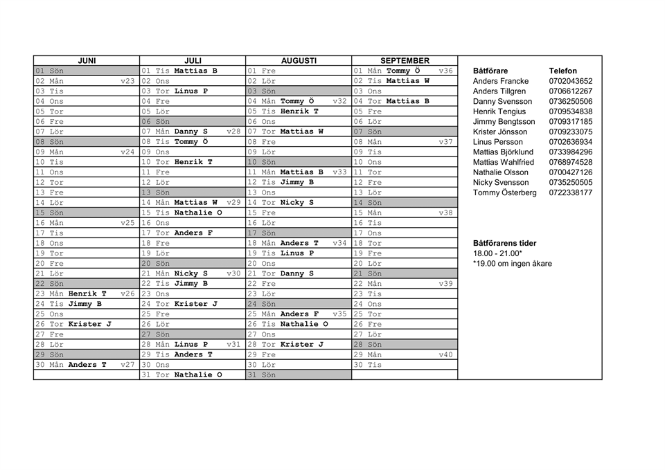 Hej! Nu har vi båtförarschemat för säsongen Måndag ,tisdag och torsdag kl. 18-21 är där schemalagd träning men på måndagarna ser vi gärna att prova-på åk och ungdomsträning sker då vi kommer sträva efter att vara 2 st på plats. Funkar det dåligt för er som tänker prova-på så går det såklart att ordna de andra dagarna med 😊 Likaså om vi har ungdomar som skulle vilja träna lite mer! Välkomna ner! Bromölla Vattenskidklubb 22 jun 0kommentarer